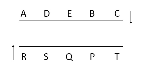 5 people A,B,C,D,E are standing in the 1st row facing another 5people P,Q,R,S,T of 2nd row in south direction. T is not facing B but his neighbour. Q is in the middle of the row . D is on the immediate left of A. C is on the immediate left of B. T is at one of the corners. E is not a neighbour of A. R is facing neither B nor D. P is on the immediate left of T.