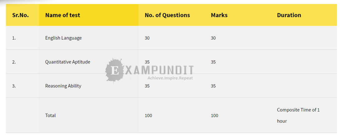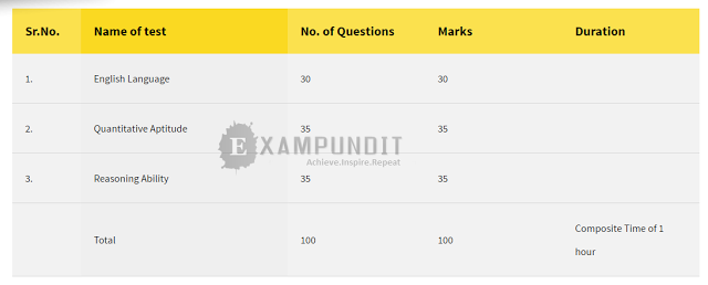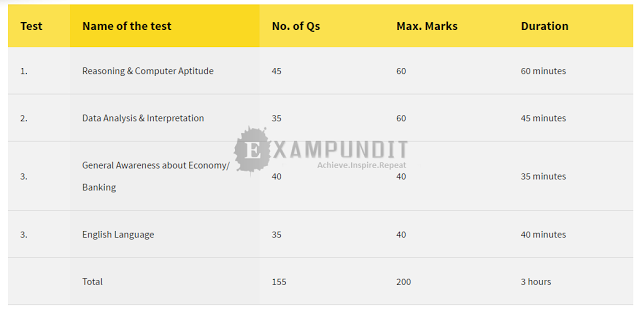 Main Examination will consist of Objective Tests for 200 marks and Descriptive Test for 25 marks. Both the Objective and Descriptive Tests will be online. Candidates will have to answer Descriptive test by typing on the computer. Immediately after completion of Objective Test, Descriptive Test will be administered.