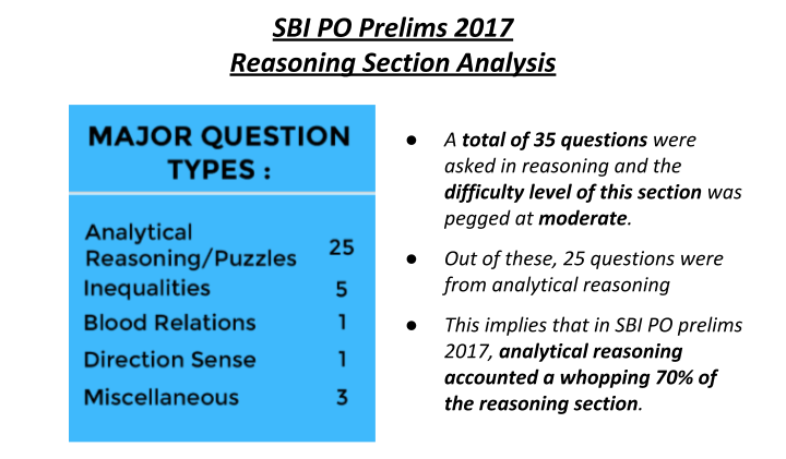 Preparing for SBI PO? This post should be helpful. In SBI exams, be it SBI PO or SBI Clerk, the general trend noticed is that ~50-60% of the reasoning questions are from analytical reasoning. This makes it crystal clear that having a strong grasp of analytical reasoning is essential for acing the SBI exams. Following is the analysis of the previous year’s reasoning section of the SBI PO exam. This will help you understand the importance of this topic in SBI exams.