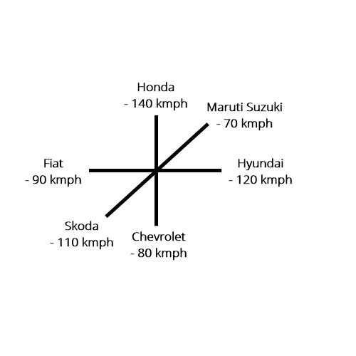 [su_spoiler title="Answer" style="fancy" icon="arrow-circle-1"] Option: C [/su_spoiler]8. Find the true statement- (A) Fiat- 140kmph (B) Honda- 120kmnph (C) Hyundai- 90kmph (D) None is true