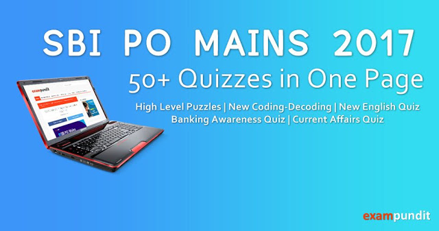 Hello and welcome to exampundit. Here is the SBI PO Mains Page containing all the Quizzes. There will be more quizzes added.