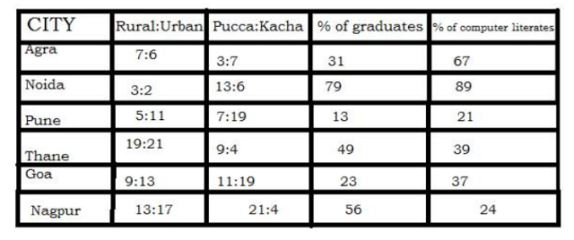 The information on the percentage of graduates and the persons with computer literacy from different places is also denoted in the table.