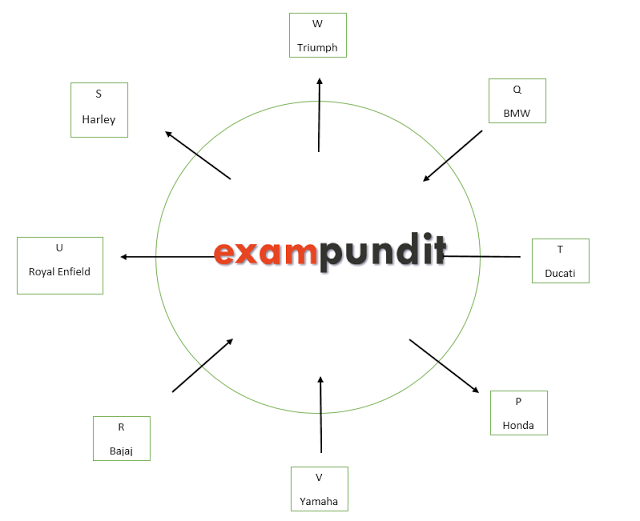 Q.1 Who sits third to the right of the one who drives Triumph?