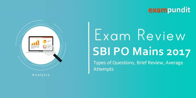 Hello and welcome to exampundit. Here is the Brief Review of SBI PO Mains 2017 along with the types of questions came and average attempts. Special thanks to Aarushi Mathur, V Pandey for providing the information on types of questions.