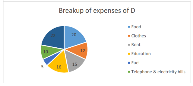 1. Expenditure of D on food =(20/100) x 30000 = 6000