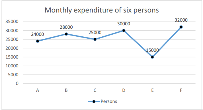 Average expenditure on food for all the six persons = 6000/1.2 = 5000