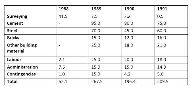 Questions 1-6: The table below shows the estimated cost (in Rs.