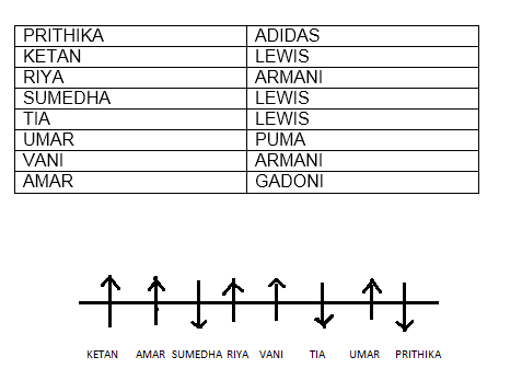 Umar, Vani, and Amar. They like different brands-Armani, Gadoni, Puma, Lewis,