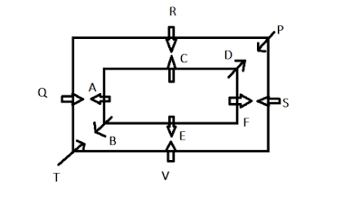 squares. One square is inside another. P, Q, R, S, T and V are in the outer