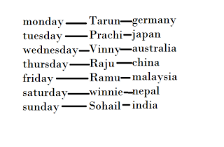 the same week. Raju visits on Thursday. Only two persons visit between Raju and