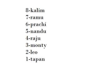 lives immediately below Prachi. Kalim lives immediately above Ramu. There are