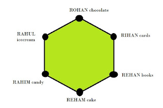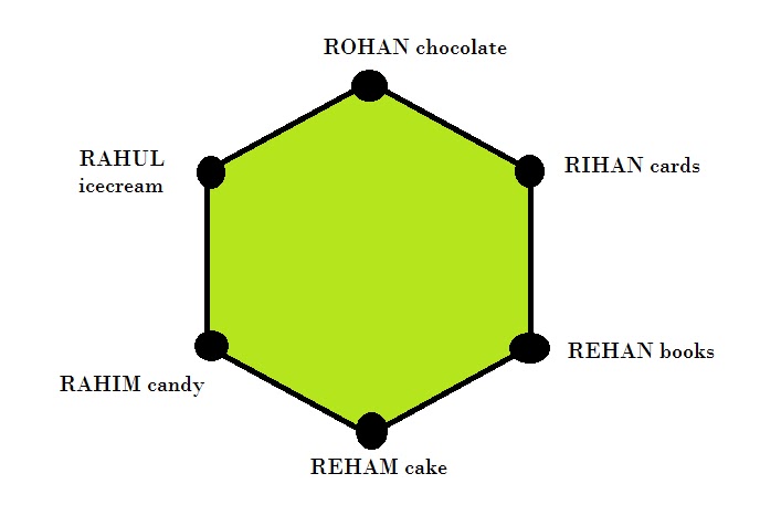 from each other. Six persons –Rahul, Rehan, Reham, Rihan, Rahim, Rohan come for