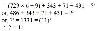 × 6 ÷ 9 + (7)3 + 71 =(?)3 – 431