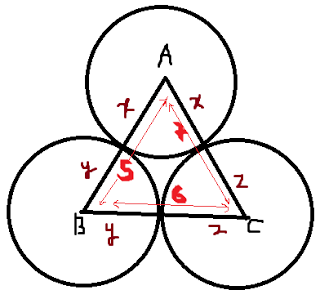 3.Three circles touch each other externally. The distance between their centers is 5 cm, 6 cm, and 7 cm. Find the radii?