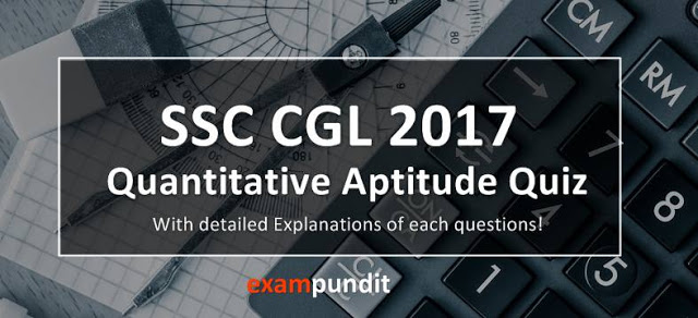 Hello and welcome to exampundit. Here is the very first set of SSC CGL Quantitative Aptitude Quiz for 2017 SSC CGL.