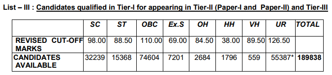 The result of Tier-I of CGLE, 2017 was declared on 30.10.2017 after considering representations of the candidates and finalization of Answer Keys. However, it was discovered that due to a technical glitch, a few tentative Answer Keys had not been revised. The Commission, therefore, undertook a comprehensive review. Based on the comprehensive review undertaken by the Commission, there has been a lowering in the cut off marks which has resulted in the revision of the result.