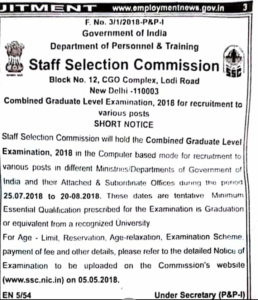 Hello and welcome to exampundit. We have received an official update from SSC that the notification of SSC CGL 2018 examination will come out on 5 May 2018.