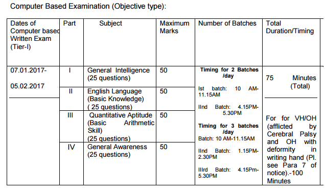 - Date of Computer Based Examination (Tier-I): 07.01.2017/05.02.2017