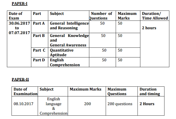 - Paper-II: 08-10-2017
