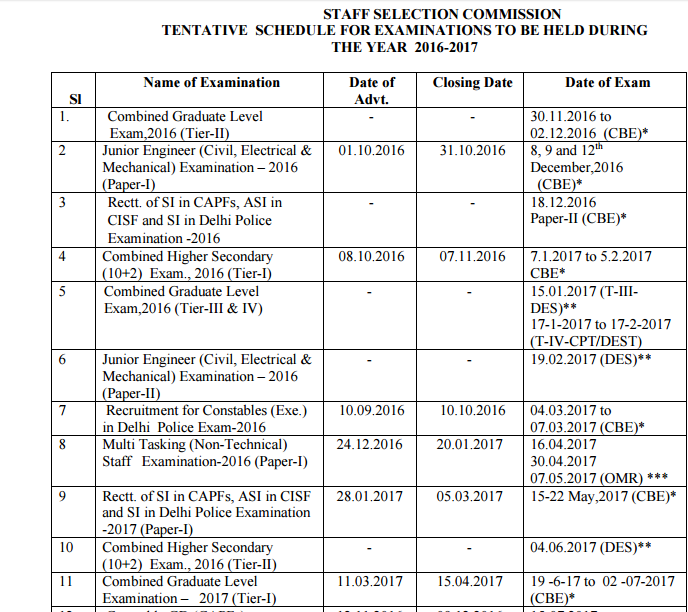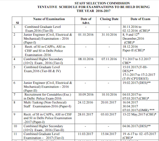 Hello and welcome to exampundit . SSC has notified the tentative exam schedule of various recruitment exams in 2016-17.