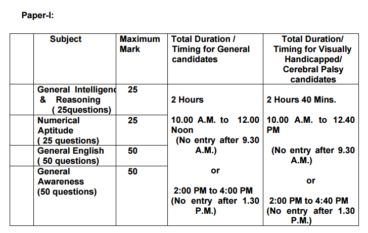 NOTE-I : Paper-I will consist of Objective Type- Multiple