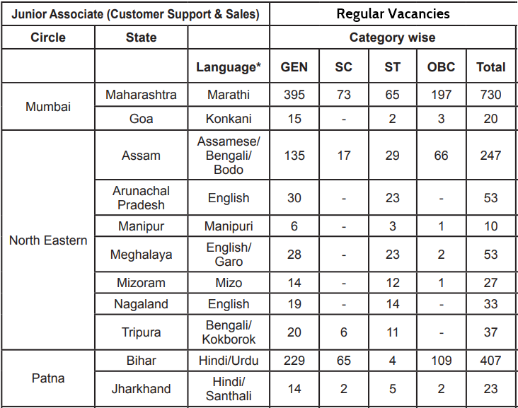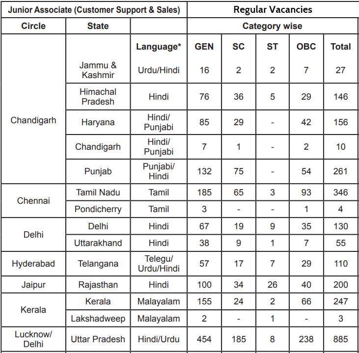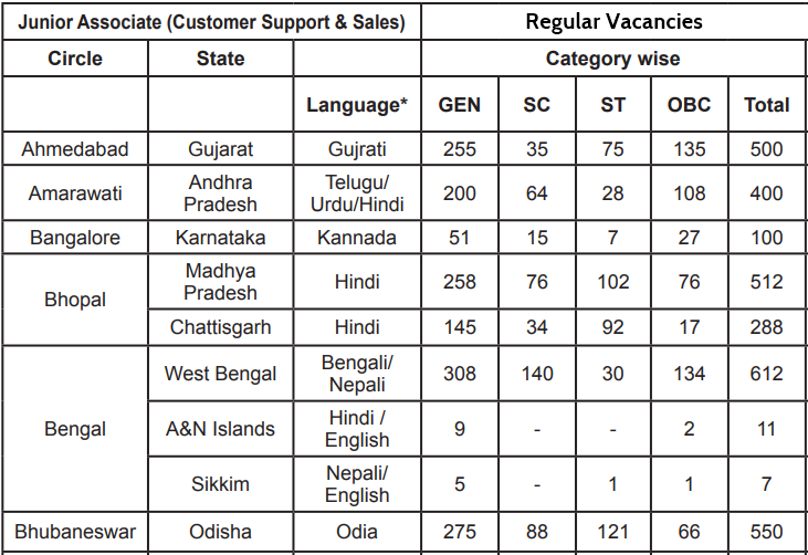 General: 3788 SC: 1111 ST: 711 OBC: 1590 Total: 7200Statewise Vacancies in SBI Clerk 2018