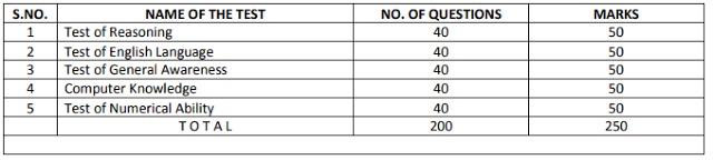 The Main Examination (On-line Objective Test) for 250 marks, would be of TWO Hours duration and will consist of 5 sections as follows: