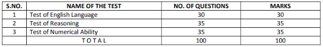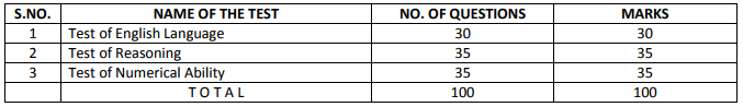 The Preliminary Examination (On-line Objective Test) for 100 marks, would be of ONE Hour duration and will consist of 3 sections as follows: