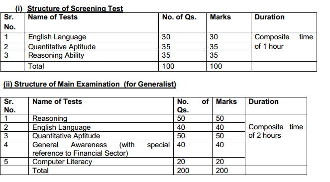 The selection would be in the stages of Screening test and Main examination (online multiple choice objective type) + Descriptive Test and interview.